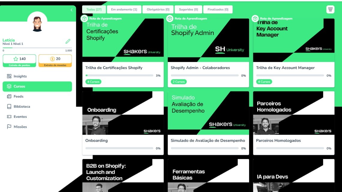 Em parceria com a Escol.AI, a Shakers estruturou uma universidade corporativa interna — a Shakers University — desenhada para o dia a dia da operação. O caminho incluiu: